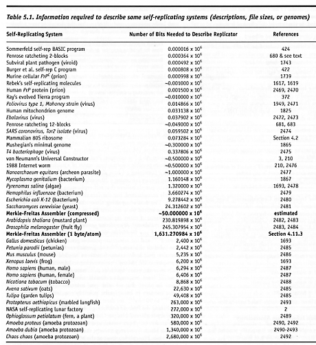 (3) Information closure – can the system successfully command and control all processes required for complete self-construction? The vast proliferation of tens of thousands of different species of fully-autonomous self-replicating internet viruses and countless autonomous virtual organisms and artificial life software entities (Section 2.2) constitutes an existence proof that 100% information closure is possible in artificial self-replicating entities. The information caches needed to describe self-replicating systems can be surprisingly modest, often <106 bits (Table 5.1).